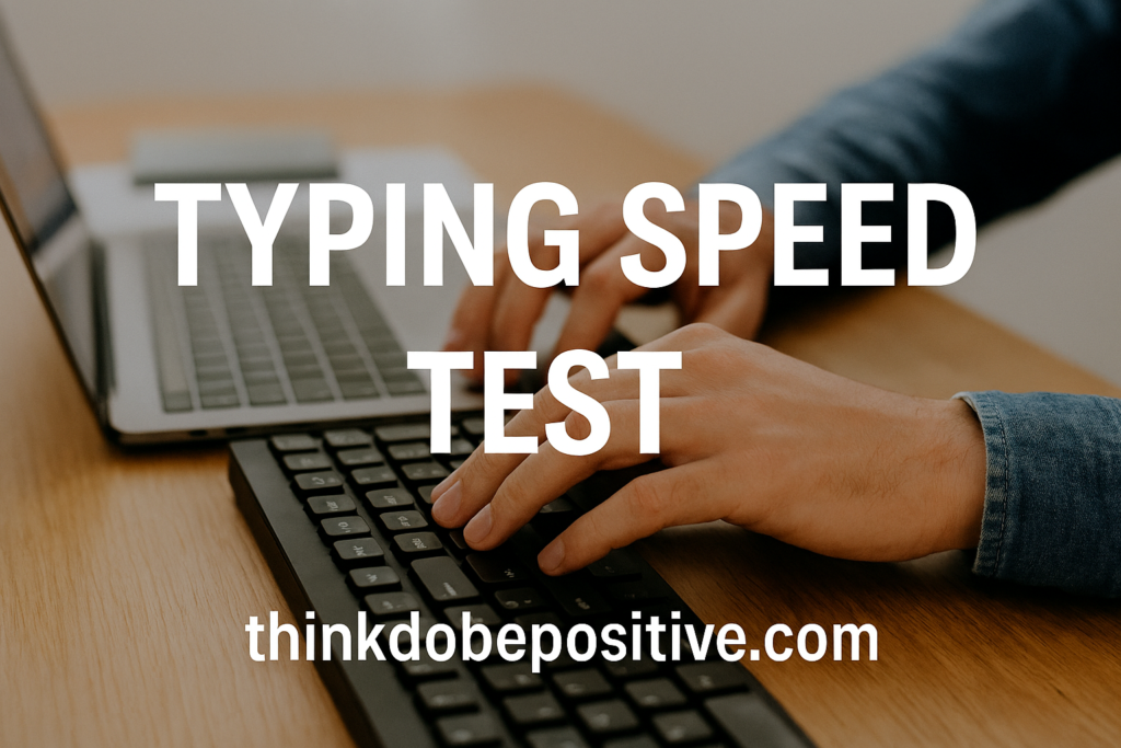 Typing Speed Test TDBP 1 month ago Typing Speed Tester Start Typing Test Click "Start Typing Test" to load text... Finish Test Try Again Typing Score Card thinkdobepositive.com Copy Link Share on Facebook Share on Twitter Share on WhatsApp Download Card Leaderboard (Top 10) RankNameWPMAccuracy